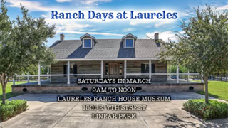Experience the Historic Laureles Ranch House Museum y’all! In honor of Texas History Month, the BHA will open the doors to the Laureles Ranch House (located in Linear Park) every Saturday morning in March. Guided tours of the house will be available until 12 noon. Visit our Facebook and Instagram for more information and details for “Ranch Days”.