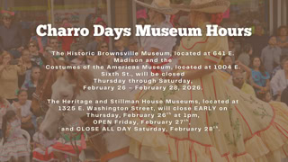 The Historic Brownsville Museum, located at 641 E. Madison and the Costumes of the Americas Museum, located at 1004 E. Sixth St., will be closed Thursday through Saturday, February 26 – February 28, 2026.