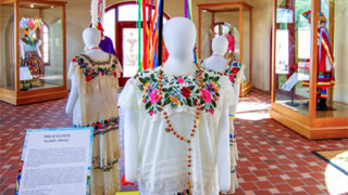 Featuring 12 costumes from throughout Mexico, ¡Bailamos! Highlights the significance of each regional tradition while exploring the distinctive costume, choreography, and musical elements that celebrate and study dance. As a living tradition, each dance is continually practiced and preserved across generations.
