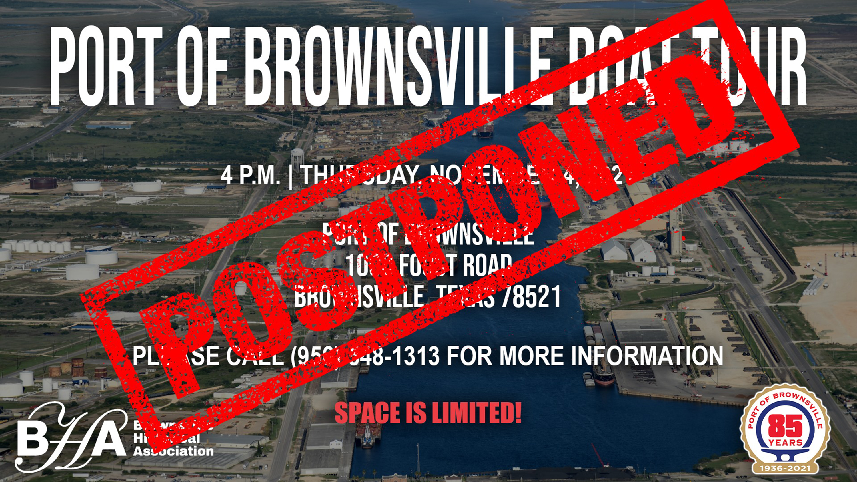 Announcement: Due to inclement weather, the Port of Brownsville Boat Tour has been postponed.